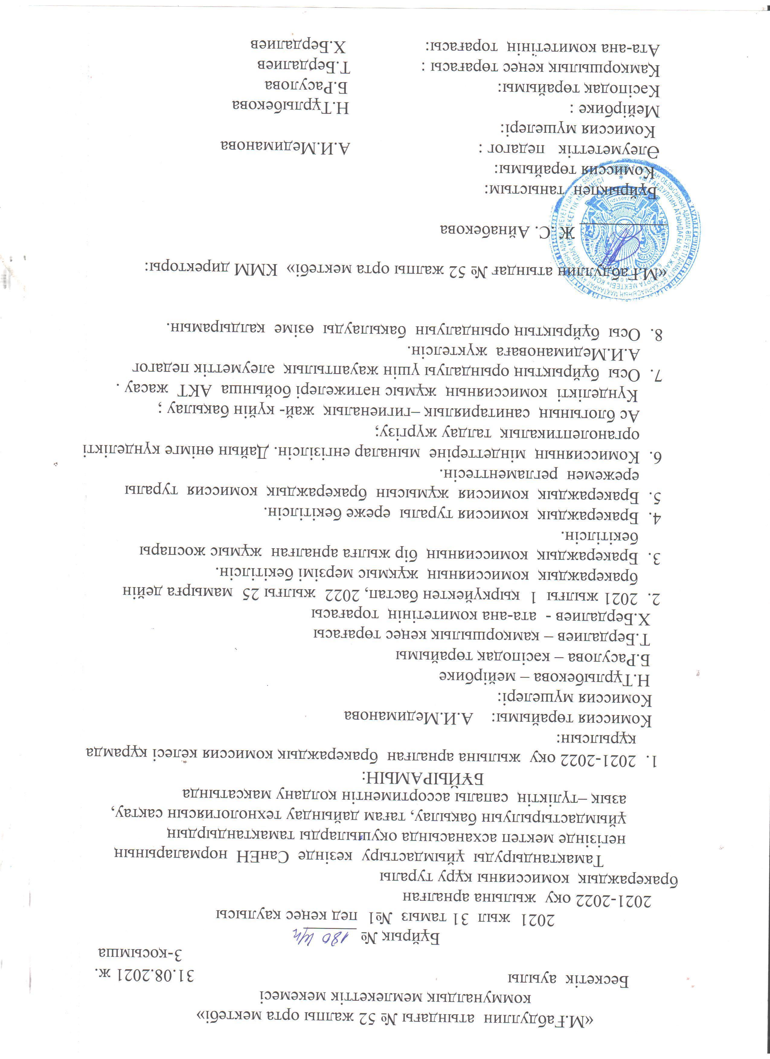 Қабылдау бөлімі :