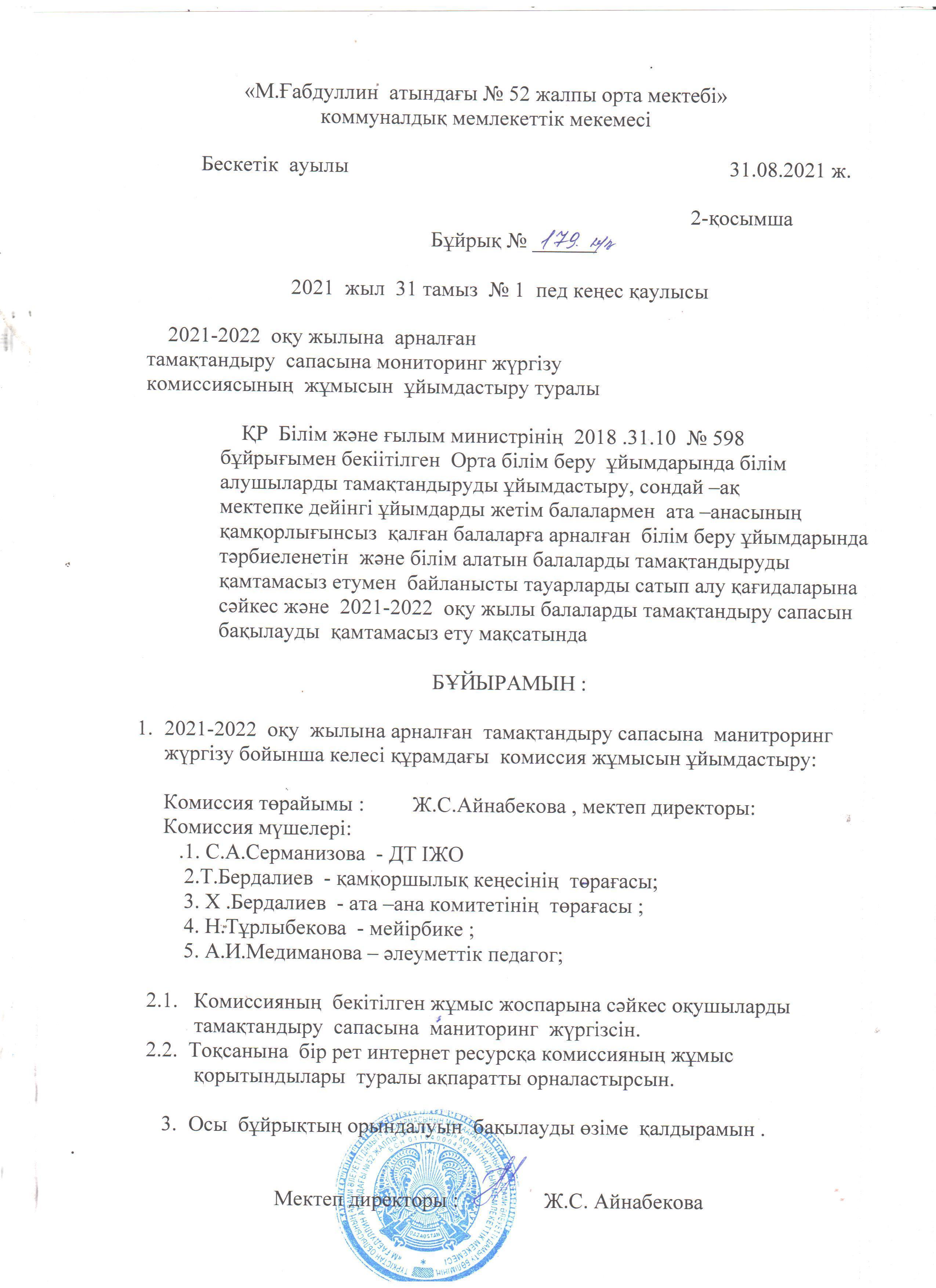 Қабылдау бөлімі :